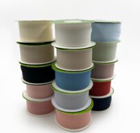 For our Valentine’s Day wreath we paired together a mix of 2″ organza ribbons, striped grosgrain ribbon, gold foil satin ribbon, and rayon ribbons. Mixing together different textures gave the wreath a more layered appearance.